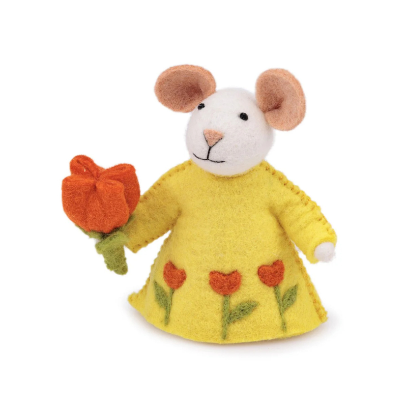 Sjaal met Verhaal - Gele muis met tulp