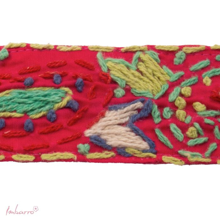 Deze roodroze riem van 110 cm is een echte eyecatcher: met de hand geborduurd, vol kleur en met zoveel liefde gemaakt. Het borduurwerk wordt draad voor draad met zorg en liefde aangebracht door vakmensen die werken onder goede, eerlijke omstandigheden. Een vrolijke finishing touch voor elke jeans, jurk of tuniek, en een sieraad dat je outfit meteen een eigen, uitgesproken karakter geeft.