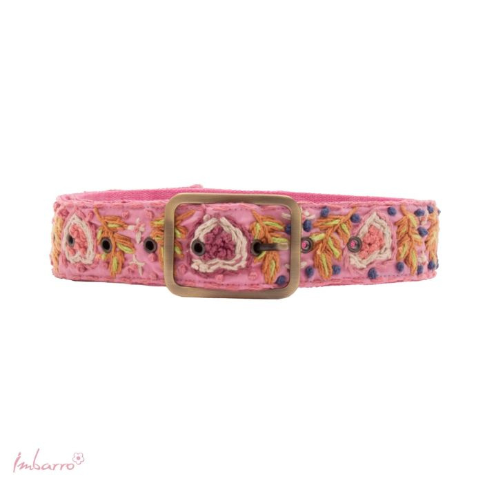 Deze zachtroze riem van 110 cm is een echte eyecatcher: met de hand geborduurd, vol kleur en met zoveel liefde gemaakt. Het borduurwerk wordt draad voor draad met zorg en liefde aangebracht door vakmensen die werken onder goede, eerlijke omstandigheden. Een vrolijke finishing touch voor elke jeans, jurk of tuniek, en een sieraad dat je outfit meteen een eigen, uitgesproken karakter geeft.