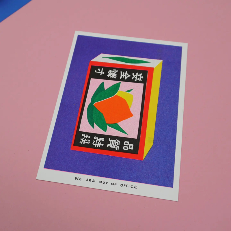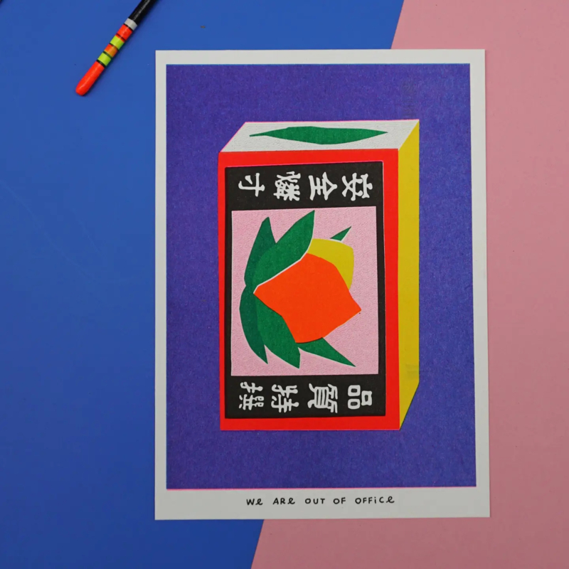Risograph-afdruk van een mooi Japans luciferdoosje Elke afdruk is enigszins verschillend door deze techniek, wat elke print uniek maakt. Mooi in een lijstje...