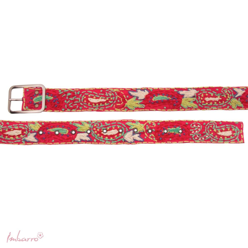 Imbarro - Riem Clara redDeze roodroze riem van 110 cm is een echte eyecatcher: met de hand geborduurd, vol kleur en met zoveel liefde gemaakt. Het borduurwerk wordt draad voor draad met zorg en liefde aangebracht door vakmensen die werken onder goede,…
