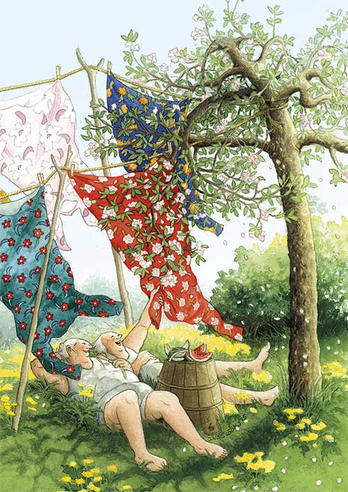 Jurkjes wassen kaartDeze illustraties van Inge Löök zijn vooral inspiraties uit haar eigen omgeving of leven. Zeer herkenbaar en vrolijk
