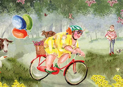 Samen op de tandem kaartDeze illustraties van Inge Löök zijn vooral inspiraties uit haar eigen omgeving of leven. Zeer herkenbaar en vrolijk