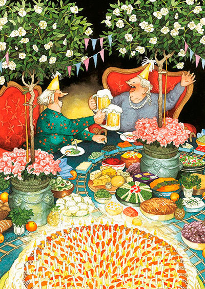 Feest en bier kaartDeze illustraties van Inge Löök zijn vooral inspiraties uit haar eigen omgeving of leven. Zeer herkenbaar en vrolijk