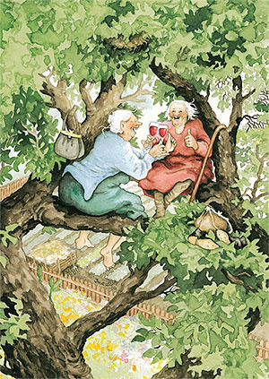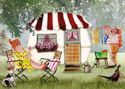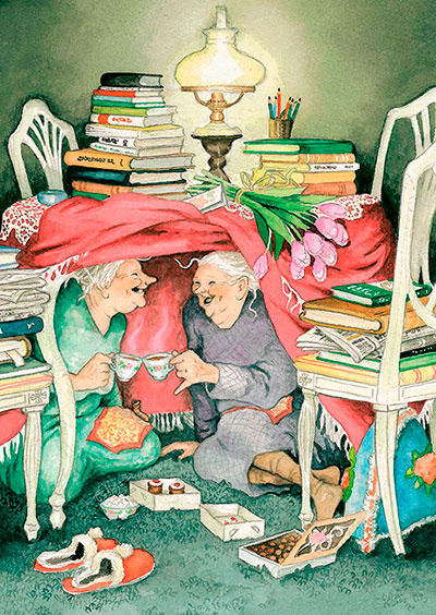 Samen wijn drinkenDeze illustraties van Inge Löök zijn vooral inspiraties uit haar eigen omgeving of leven. Zeer herkenbaar en vrolijk