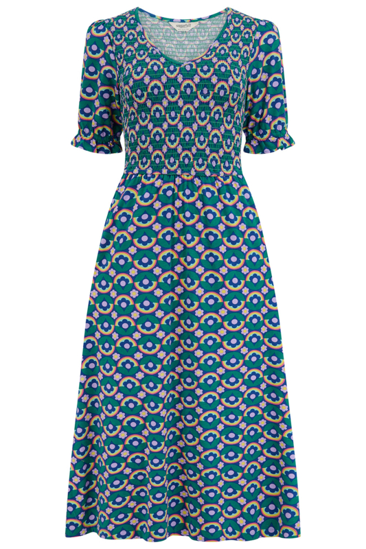 Sugerhill - Midi dress Daphne DaisyPrettig zittende halflange jurk van Jersey katoen. Het lijfje is gesmokt en dus erg rekbaar. Mouw valt over de bovenarm