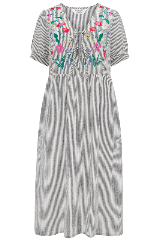 Sugarhill - Ruby smock dress Garden floralLuchtige gestreepte jurk met prachtig borduurwerk. Pofmouwtje en hoge taille maken m tot een fijne zomerjurk met zakken!