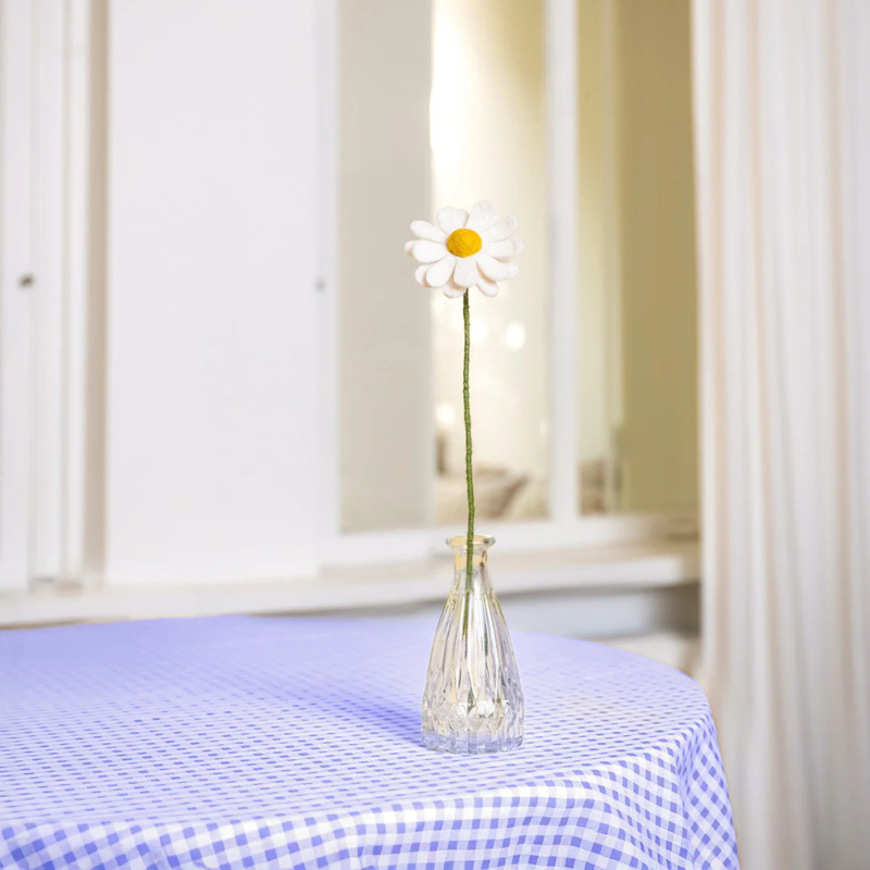 Sjaal met Verhaal - Wit margrietjeBen je ook zo gek op madeliefjes en margrietjes? Dit is een frisse, vilten margriet die het hele jaar door voor een vrolijk accent zorgt. Mooi solo in een vaasje of gecombineerd met andere vilten bloemen.